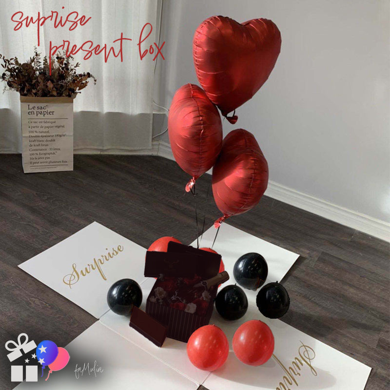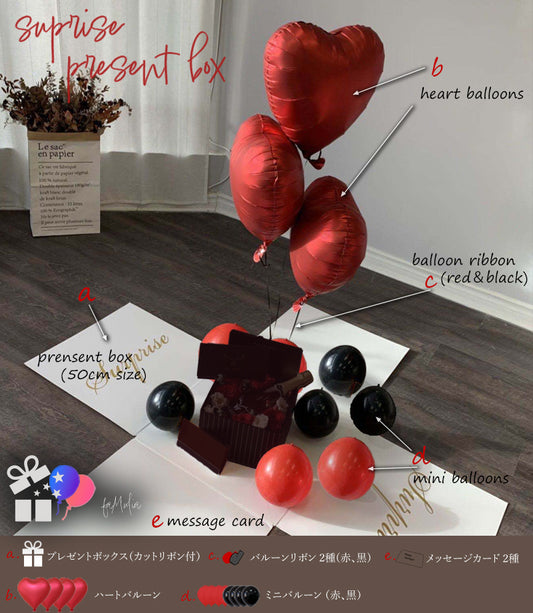 サプライズバルーンボックス 部屋ホテル 誕生日 飾り付けドッキリ 友達彼氏彼女(黒&赤ハート)