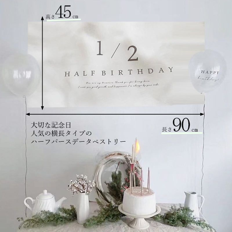 ハーフバースデー・100日祝いに使用できる風船やタペストリーなどの飾り付けグッズのページです。