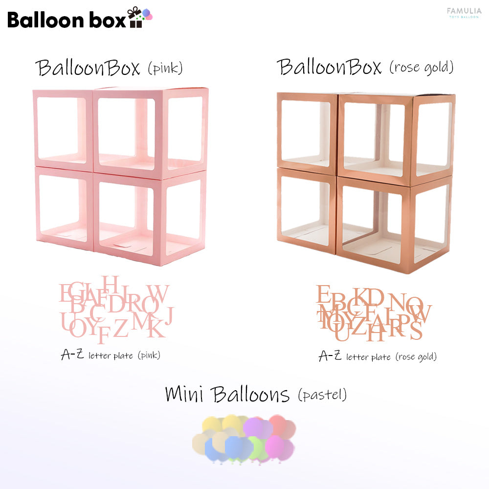 バルーンボックス 飾り付け 誕生日/送別会/推し活/【4箱セット A~Z計26文字プレート付】 (白/黒/ピンク/ROSEGOLD)